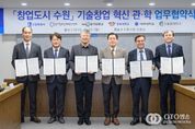 oto방송 김민석 기자 | 수원특례시가 경기창조경제혁신센터, 4개 대학과 협력해 대학의 기술창업을 발굴하고, 지원한다. 수원시와 경기창조경제혁신센터, 4개 대학은 30일 시청 상황실에서 ‘창업도시 수원 기술창업 혁신 관·학 업무협약’을 체결하고, 협력을 약속했다. 협약 기관들은 대학의 우수한 연구 성과, 인적 자원을 보유한 우수 기술창업기업을 발굴하고, 기술의 사업화를 촉진하기 위해 협력하기로 했다. 수원시는 수원기업새빛펀드의 수원기업 의무투자 약정액으로 투자를 유치하고, 경기창조경제혁신센터는 기업에 멘토링, 엑셀러레이팅(스타트업이 빠르게 성장하도록 지원), 밋업(투자자 유치 행사), 아이알(IR)데이, 투자 등을 지원한다. 대학교는 실험실 창업·창업 보육기업을 추천한다. 이날 협약을 바탕으로 대학창업 특화 프로그램인 ‘새빛 유-테크(U-Tech).판’을 시작한다. 경기창조경제혁신센터의 엑셀러레이팅 인프라를 활용해 우수한 기술력과 성장 잠재력을 갖춘 창업기업을 발굴하고, 기업의 투자 유치 역량을 극대화하는 프로그램이다. 3대 핵심 목표는 ‘인프라 적극 활용’, ‘선순환 구조 구축’, ‘실질적 투자