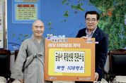 oto방송 김민석 기자 | 보령시는 27일 시장실에서 김동일 보령시장과 삽시도 금송사 죽림선원 진관스님 등 관계자가 참석한 가운데 이웃사랑 후원물품 전달식을 가졌다고 밝혔다. 이날 기탁된 물품은 230만 원 상당의 라면 108박스로, 식사 준비에 어려움을 겪는 관내 저소득 취약계층 가구의 생활 안정을 돕기 위해 마련됐다. 기탁된 물품은 각 읍·면·동을 통해 도움이 필요한 소외계층 108가구에 소중히 전달될 예정이며, 대상자들이 일상 속에서 따뜻한 이웃의 정을 느낄 수 있도록 도울 계획이다. 삽시도 금송사 죽림선원은 지난 18여 년 동안 여름철 냉방기기, 겨울철 이불 등 계절마다 꼭 필요한 맞춤형 물품을 후원하며 보령시 나눔 문화 확산의 본보기가 되고 있다. 진관스님은 “정성을 담아 준비한 물품이 우리 주변의 어려운 이웃들에게 작게나마 실질적인 도움이 되길 바란다”며 “앞으로도 이웃과 함께 상생하며 부처님의 나눔 정신을 실천해 나가겠다”고 말했다. 김동일 보령시장은 “매번 계절마다 꼭 필요한 물품으로 온정을 전해주시는 금송사 죽림선원 진관스님께 깊이 감사드린다”며 “기탁하신 소중한 성품이