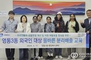 oto방송 김민석 기자 | 수원시 영통구 영통3동은 지난 17일, 외국인 주민의 생활환경 개선과 자원 재활용률 향상을 위해 관내 외국인을 대상으로 올바른 분리배출 교육을 실시했다. 이번 교육은 생활쓰레기 배출 방식에 익숙하지 않은 외국인 주민들의 불편을 해소하고 올바른 분리배출 문화 정착을 돕기 위해 마련됐다. 교육에서는 다국어 분리배출 안내문을 활용해 투명 페트병 분리배출 방법과 유용 생활폐자원 교환 제도 등을 안내했다. 김인태 영통3동장은 "이번 교육을 통해 외국인 주민들의 환경 의식을 높이고 생활쓰레기 감량과 재활용 활성화에 실질적인 도움이 될 것으로 기대한다”며 “앞으로도 외국인 주민을 포함한 모든 주민이 쉽게 이해하고 실천할 수 있는 환경교육을 지속적으로 추진하겠다”고 밝혔다. 한편, 영통3동 행정복지센터는 관내 수원출입국외국인청을 방문해 ‘찾아가는 외국인 분리배출 교육’을 실시할 계획이다.