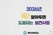 oto방송 김민석 기자 | 예산군보건소는 2026년 새해를 맞아 군민에게 필요한 보건사업 정보를 알기 쉽게 전달하기 위해 보건사업 홍보영상을 제작했다고 밝혔다. 이번 홍보영상에는 군민 건강 증진을 위해 보건소에서 추진하는 다양한 사업 내용이 담겼다. 주요 내용은 △50세 이상 무료 대상포진 예방접종 △65세 이상 무료 폐렴구균 예방접종 △의료취약지 원격협진 사업 △정신건강 심리상담 바우처 사업 △치매환자 실종예방 지원사업 △난임 시술비 지원 △취약계층 건강관리 및 환자 병원 이송 사업 등이다. 특히 2026년 신규사업으로 △산후조리원 비용 지원사업 △임산부 진료 교통비 지원사업을 포함해 출산 가정의 경제적 부담을 덜고 의료 접근성을 높이는 사업도 소개됐다. 산후조리원 이용 비용은 최대 100만원까지 지원되며, 임신 중 병·의원 방문에 따른 교통비도 지원받을 수 있다. 보건소 관계자는 “이번 홍보영상을 통해 군민들이 보건소에서 제공하는 다양한 서비스를 쉽게 접하고 적극 활용하길 바란다”며 “앞으로도 군민의 건강한 삶을 위해 최선을 다하겠다”고 말했다.
