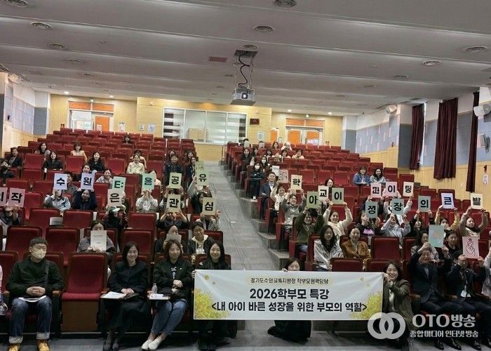 oto방송 김민석 기자 | 경기도수원교육지원청은 4월 2일 오전, 수원시 평생학습관 대강당에서 관내 학부모 200여 명이 참석한 가운데‘2026 학부모 특강’'내 아이 바른 성장을 위한 부모의 역할'을 성공적으로 개최했다고 밝혔다.