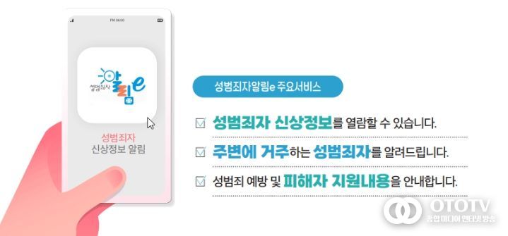 oto방송 김민석 기자 | 성범죄자가 거주하는 지역의 아동·청소년 보호자에게 카카오톡과 네이버 앱을 통해 정보를 제공합니다.