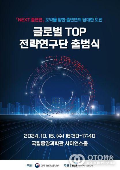 oto방송 김민석 기자 | 과학기술정보통신부와 국가과학기술연구회는 10월 16일, 금년도 선정된 ‘세계 최정상(글로벌 TOP) 전략연구단’의 착수를 기념하고 연구단별 임무·계획의 대국민 발표를 위한 출범식을 개최했다.