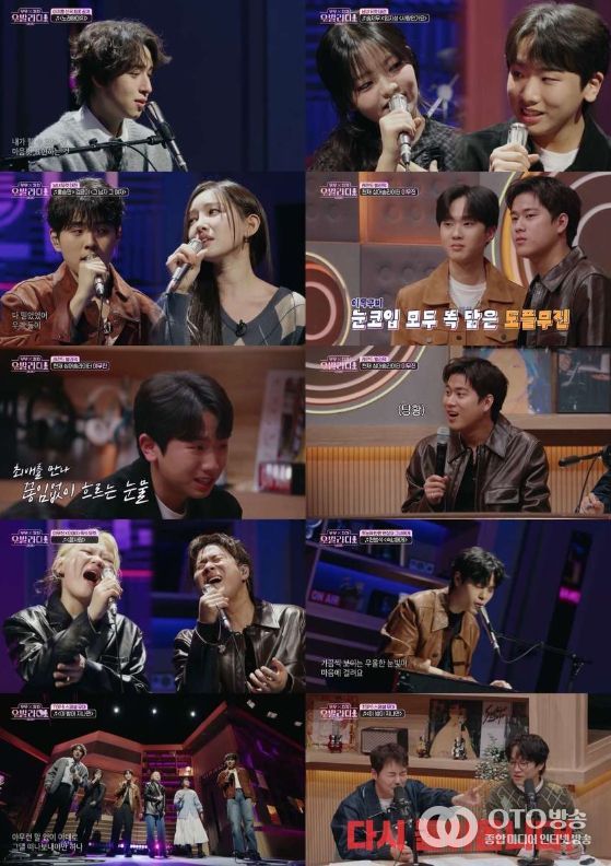 이어진 코너에서는 ‘남녀 듀엣’의 맞대결이 펼쳐졌다. 무무팀에서는 재소환 요청이 쇄도했던 임지성×송지우의 하울&제이의 ‘사랑인가요’를 선곡했다. 두 사람은 한층 자연스러워진 눈빛 교환과 풋풋한 감성으로 무대를 채웠고, 이를 지켜보던 출연진들은 “꿀 떨어진다”라며 들뜬 반응을 보여 웃음을 자아냈다.