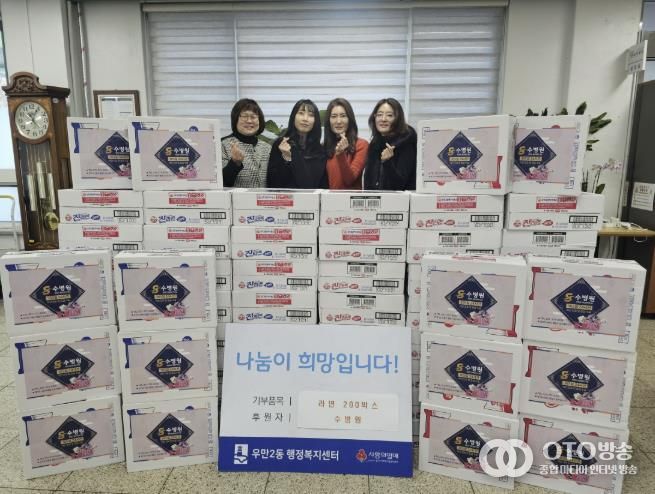 oto방송 김민석 기자 | 지난 2월 3일, 수병원에서 설을 앞두고 지역사회에 정을 나누고자 따뜻한 마음이 담긴 라면 200박스를 수원시 팔달구 우만2동에 전달했다.