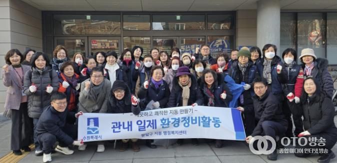 oto방송 김민석 기자 | 수원시 팔달구 지동에서는 지난 3일, 다가오는 설 명절을 맞이해 통장협의회 30여 명과 동 직원들이 참여하여 설맞이 일제 대청소를 실시했다.