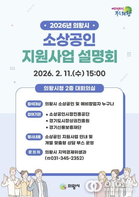 oto방송 김민석 기자 | 의왕시가 2월 11일 오후 3시, 시청 대회의실에서 ‘2026년 소상공인 지원사업 설명회’를 개최한다.