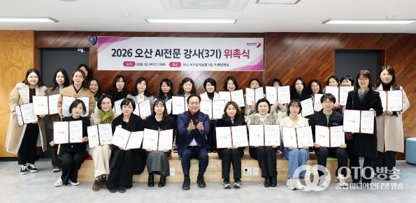 oto방송 김민석 기자 | 오산시는 지난 4일 오산AI코딩에듀랩 3층 미래인재실에서 『2026년 오산 AI전문 강사 3기 위촉식』을 개최했다고 밝혔다.