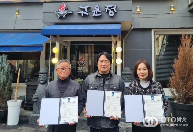 oto방송 김민석 기자 | 수원시 장안구 연무동은 지난 5일, 관내 음식점 ‘구운정’과 지역 내 사회공헌 확대를 위한 ‘온(溫)기 가득, 정(情)성 가득 행복한 한 끼’ 업무협약(MOU)을 체결했다.