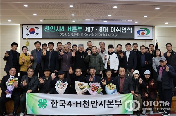oto방송 김민석 기자 | 천안시4-H본부는 지난 2월 5일 천안시농업기술센터 대강당에서 김양섭 농업기술센터소장, 농업인단체장 및 4-H회원이 참석한 가운데 ‘천안시4-H본부 제7·8대 회장 이·취임식’을 개최했다고 밝혔다.