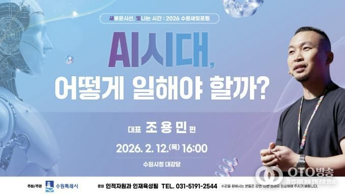 oto방송 김민석 기자 | ‘새로운 시선, 빛나는 시간’ 제176회 수원새빛포럼이 2월 12일 오후 4시 수원시청 대강당에서 열린다. 조용민 언바운드랩데브 대표가 강연자로 나선다.