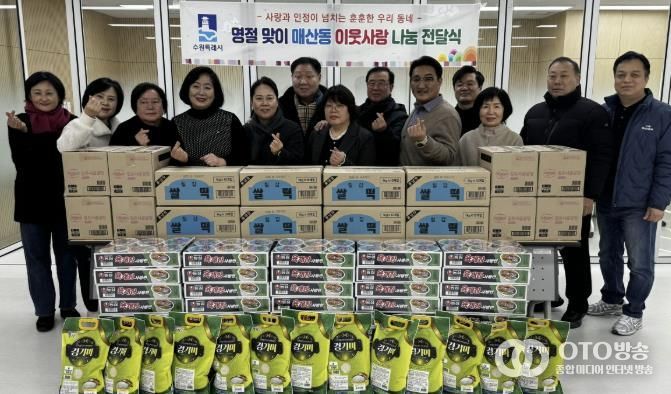 oto방송 김민석 기자 | 지난 6일, 수원시 팔달구 매산동 단체장협의회는 설 명절을 앞두고 매산동 행정복지센터를 방문해 취약계층 지원을 위한 기부금과 먹거리 물품을 전달하며 이웃돕기 활동을 펼쳤다.