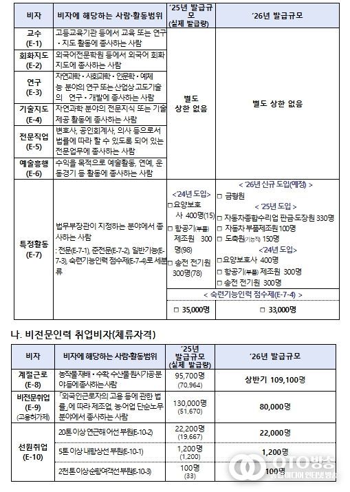 oto방송 김민석 기자 | 법무부는 외국인 유입이 지역경제와 국민 일자리에 미치는 영향을 종합적으로 분석한 결과를 바탕으로, 관계부처와의 협의를 거쳐 2026년 연간 비자 발급규모를 공표했다.