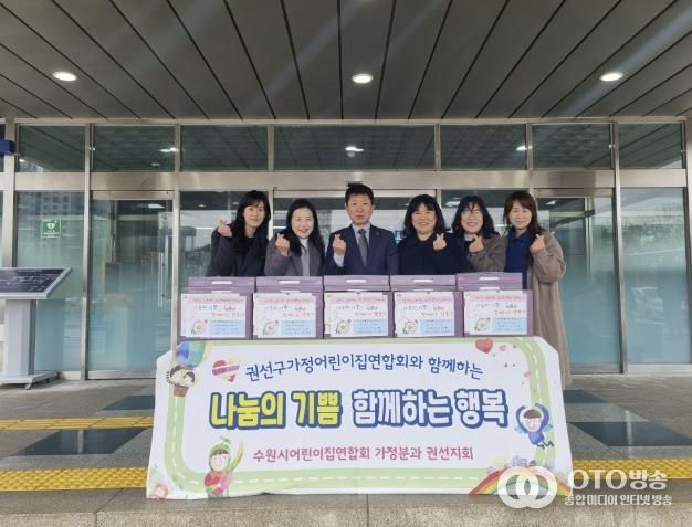 oto방송 김민석 기자 | 수원시어린이집연합회 가정분과 권선지회에서는 지난 10일 권선구를 찾아 떡국떡 60박스를 후원했다.