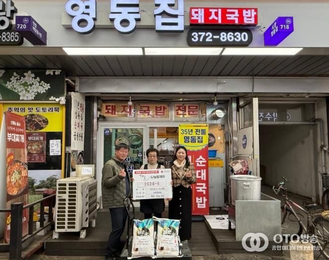 임영자 시장영동집 대표는 “작은 정성이지만 지역 내 어려운 분들이 든든한 한 끼를 드시는 데 보탬이 됐으면 좋겠다”며 “앞으로도 이웃에 대한 관심과 나눔을 지속해 나가겠다”고 전했다.