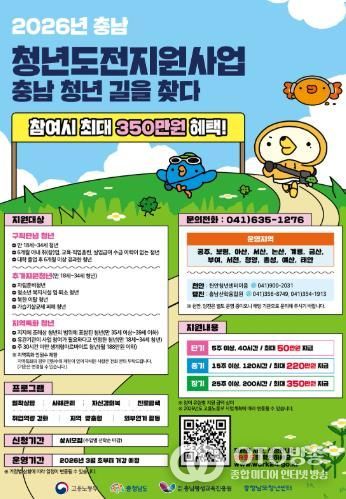 oto방송 김민석 기자 | 서천군이 구직에 어려움을 겪는 지역 청년들의 자신감 회복과 사회 진출을 지원하기 위해 충남청년센터와 협력해 ‘2026 청년도전지원사업’ 참여자를 모집한다.