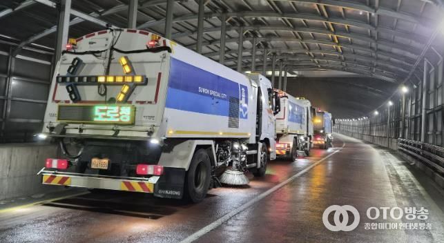 oto방송 김민석 기자 | 수원시 영통구는 지난 11일 설 명절을 맞아 귀성객들에게 쾌적하고 안전한 도로 환경을 제공하기 위해 주요 도로 구간에 대한 노면 청소차량 합동 작업을 실시했다.