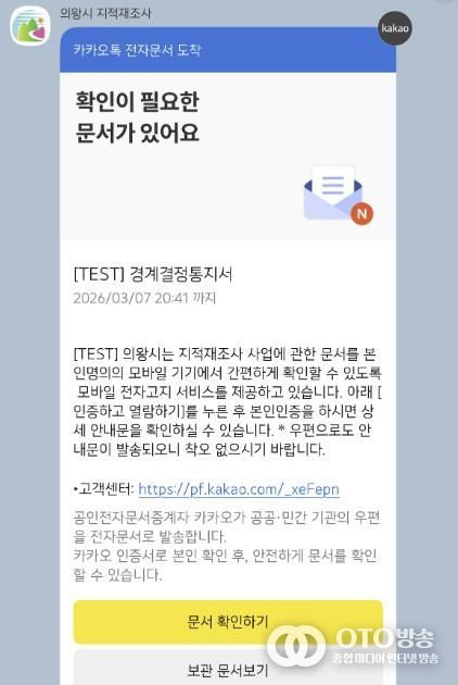oto방송 김민석 기자 | 의왕시가 지적재조사 통지서를 스마트폰으로 발송하는 ‘모바일 전자고지 시스템’을 본격적으로 시행한다.
