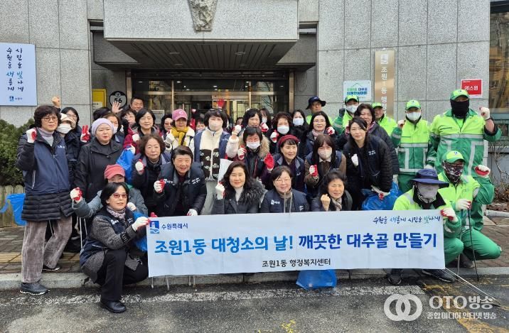 oto방송 김민석 기자 | 수원시 장안구 조원1동은 지난 12일, 다가오는 설 명절을 맞아 ‘설맞이 대청소’를 실시했다.