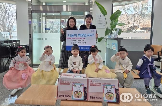 oto방송 김민석 기자 | 수원시 장안구 조원2동에 위치한 토마토 어린이집은 지난 12일, 설 명절을 맞아 원생들과 함께 조원2동 행정복지센터에 떡국떡 10팩을 전달했다.