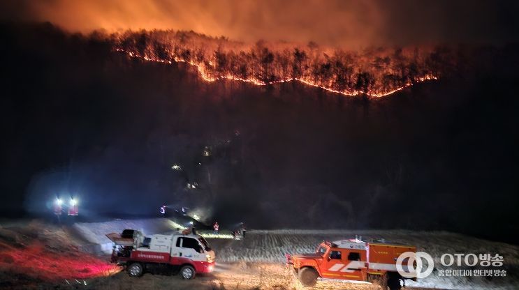 oto방송 김민석 기자 | 예산군은 지난 21일 오후 2시 22분경 대술면 송석리 411-4번지 주택 인근에서 발생한 화재가 인근 산림으로 확산되며 산불로 이어졌다고 밝혔다.