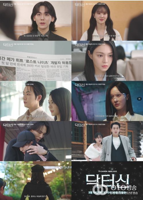 한편 TV CHOSUN 새 주말미니시리즈 ‘닥터신’은 불의의 사고로 혼수상태에 빠진 톱스타와 그녀를 사랑했던 남자, 그녀를 사랑하고 있는 남자들의 기이한 로맨스를 담는다. 오는 3월 14일(토) 밤 10시 30분 TV CHOSUN과 쿠팡플레이에서 동시 공개된다.
