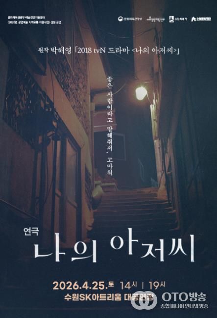 oto방송 김민석 기자 | 수원문화재단 수원SK아트리움은 오는 4월 25일, 수많은 시청자의 인생 드라마로 손꼽히는 tvN 드라마 원작의 연극 ‘나의 아저씨’를 대공연장 무대에 올린다고 밝혔다.