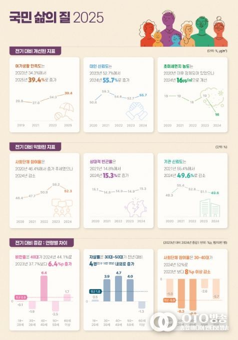 보고서에서는 2025년 12월 말 기준으로 지표가 전기 대비 개선 또는 악화됐는지에 대한 진단을 통해 우리 사회 삶의 질 변화를 보여준다.