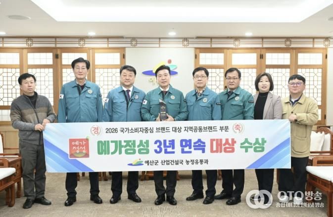 oto방송 김민석 기자 | 예산군 농특산물 공동브랜드 ‘예가정성’이 브랜드 인지도와 선호도 측면에서 소비자에게 높은 평가를 받아 3년 연속 ‘2026 국가 소비자중심 브랜드(지역공동브랜드 부문) 대상’을 수상했다.