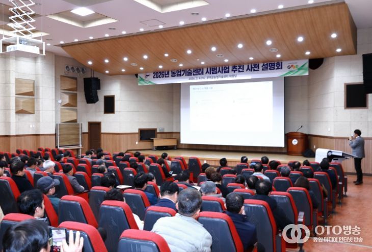 oto방송 김민석 기자 | 부여군은 지난 4일 센터 대강당과 팀별 교육장에서 사업대상자 및 참여 농가 100여 명을 대상으로 ‘2026년 농업기술 시범사업 원활한 추진을 위한 사전 설명회’를 개최했다.