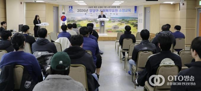 oto방송 김민석 기자 | 수원시 팔달구는 지난 5일 팔달구청 대회의실에서 사회복무요원 전원을 대상으로 2026년 상반기 소양교육을 실시했다.