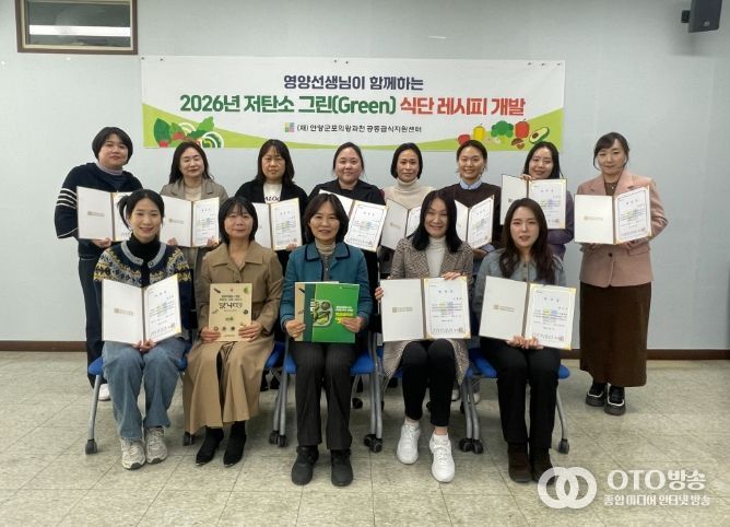 oto방송 김민석 기자 | (재)안양·군포·의왕·과천공동급식지원센터는 지난 5일 기후위기 대응과 지속 가능한 식문화 조성을 위한 ‘2026년 저탄소 그린 식단 레시피 개발 4기 TF팀 위촉식’을 개최했다고 6일 밝혔다.