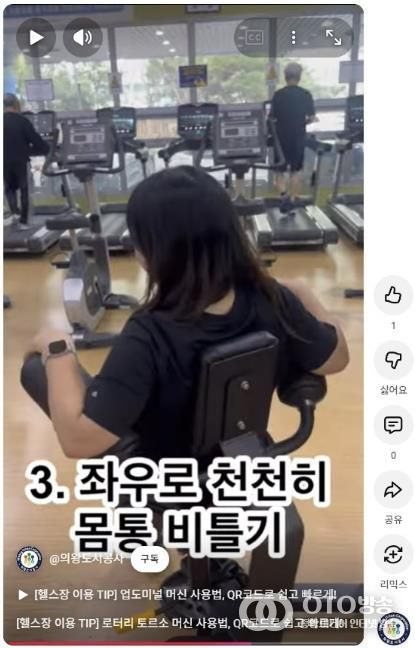 oto방송 김민석 기자 | 의왕도시공사는 국민체육센터에 헬스장을 이용하는 시민들의 안전한 운동 환경 조성과 이용 편의 향상을 위해 헬스기구 사용 방법을 안내하는 큐알(QR)코드 기반 영상 안내 서비스를 도입했다고 밝혔다.
