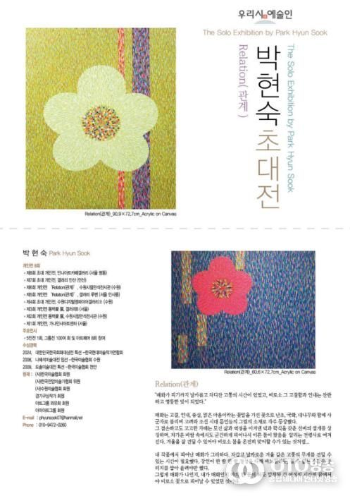 한국미술협회 회원 박현숙 작가는 대한민국 한국회화대상전 특선, 도솔미술대전 특선 등 다양한 공모전에서 수상하며 활발하게 작품 활동을 하고 있다.