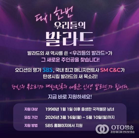 oto방송 김민석 기자 | 시즌2로 돌아오는 SBS ‘우리들의 발라드’가 발라드 신화를 이을 새로운 목소리를 찾는다.