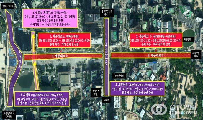 oto방송 김민석 기자 | 서울시는 3월 21일 광화문 일대에서 열리는 BTS 컴백 행사에 국내외 관람객이 대규모로 집중될 것으로 예상되는 만큼, 행사장 주변과 지하철 역사를 중심으로 종합 교통대책을 추진한다고 밝혔다. 당일 지하철, 버스 등 대중교통을 이용해야 할 경우 무정차, 우회 운행 등 관련 정보를 확인하는 것이 좋다.