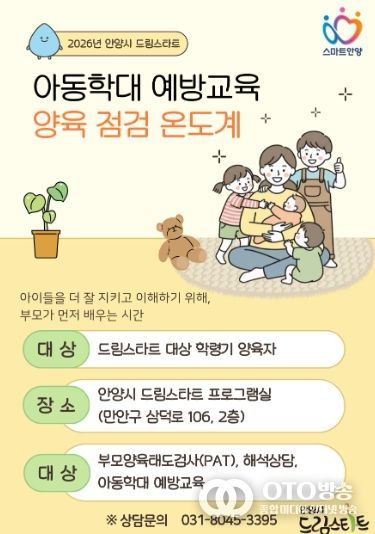 oto방송 김민석 기자 | 안양시가 아동 학대를 사전에 차단하고 건강한 양육 환경을 조성하기 위해 맞춤형 부모 교육 프로그램인 ‘2026 드림스타트 양육 점검 온도계’를 본격 가동한다고 18일 밝혔다.