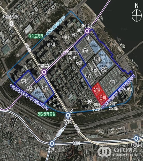 oto방송 김민석 기자 | 여의도 삼익아파트와 은하아파트가 최고 50층 내외(삼익 56층, 은하 49층), 1,302세대(삼익 630, 은하 672) 규모의 고품격 복합 주거단지로 거듭난다.