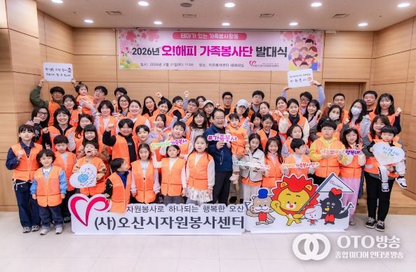 oto방송 김민석 기자 | (사)오산시자원봉사센터는 지난 21일 오산시자원봉사센터 1층 대회의실에서 가족 단위 나눔 문화 확산을 위한 ‘2026년 제18기 오! 해피가족봉사단’ 발대식을 개최했다고 밝혔다.