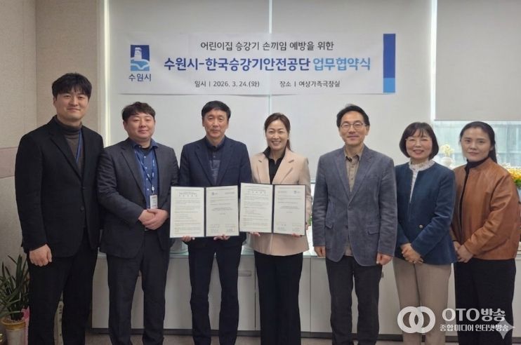 oto방송 김민석 기자 | 수원특례시와 한국승강기안전공단 수원지사는 24일 수원시청에서 ‘어린이집 승강기 손 끼임 사고 예방을 위한 업무협약’을 체결하고, 어린이집 내 영유아의 안전한 보육 환경을 조성하기 위해 협력하기로 했다.