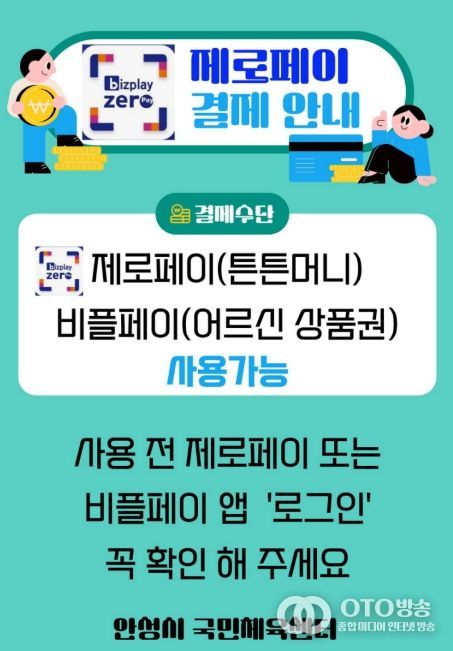 oto방송 김민석 기자 | 안성시시설관리공단에서 운영하는 안성시 국민체육센터는 오는 3월 23일부터 제로페이를 통한 튼튼머니 및 어르신 상품권 결제 서비스를 시행한다고 밝혔다.