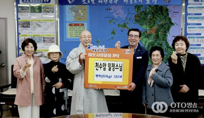 이번 전달식에서 천수암은 720만 원 상당의 백미 20kg 120포를 기탁하며 지역사회를 위한 지속적인 나눔 활동에 앞장서고 있다.