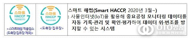 oto방송 김민석 기자 | 농림축산식품부와 식품의약품안전처는 스마트 해썹 제도를 도축장과 집유장까지 확대 적용할 수 있도록 '식품 및 축산물 안전관리인증기준' 고시를 3월 31일 일부 개정했다고 밝혔다.