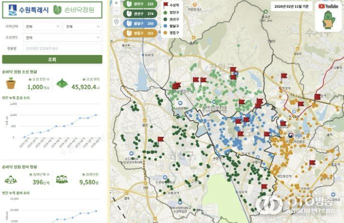 oto방송 김민석 기자 | 2023년 봄부터 수원시 곳곳에 아담한 정원이 하나둘씩 생기기 시작했다. 시간이 흐르면서 정원은 점점 늘어났고, 지금은 수원을 걷다 보면 5분에 한 번씩은 자투리땅에 만들어진 아름다운 정원을 만날 수 있다.