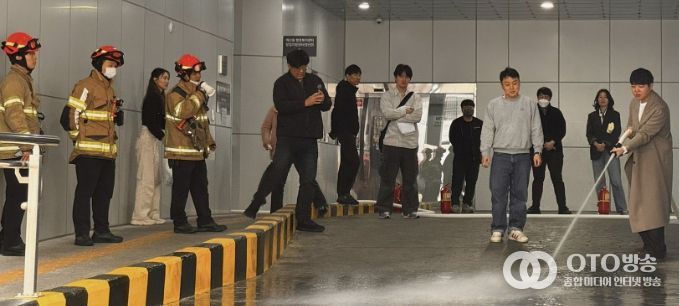 훈련은 화재 발생 시 행동 요령 교육을 시작으로 ▲연기 발생 상황을 가정한 대피 훈련 ▲교육용 소화기 사용 실습 ▲옥내 소화전 살수 실습 순으로 진행됐으며, 참가자들은 실제 화재 상황에 대비한 대응 능력을 체득했다.