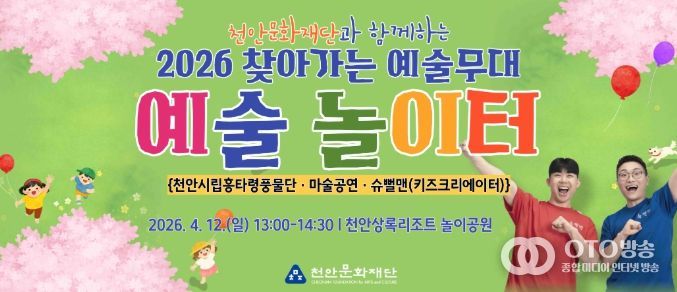 oto방송 김민석 기자 | 천안문화재단은 오는 12일 천안상록리조트 놀이공원 일원에서 ‘예술놀이터’를 운영한다고 7일 밝혔다.