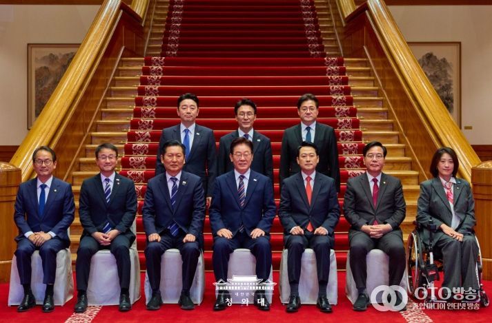oto방송 김민석 기자 | 이재명 대통령이 청와대에서 여야 당 대표 등과 만나 여야정 민생경제협의체 오찬 회담을 했다.