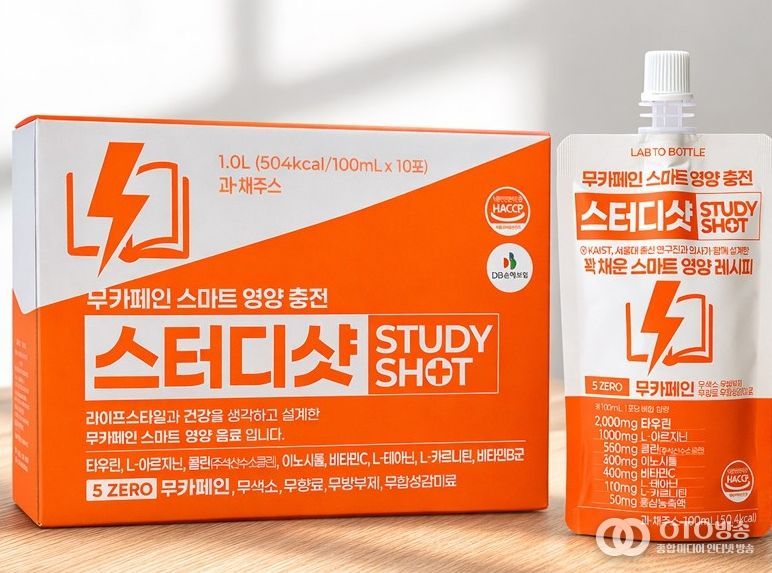 스터디샷은 카페인 부작용을 최소화하기 위해 무카페인 공법을 적용했으며 설탕, 방부제, 향료 등 5가지 성분을 배제한 ‘5무(無)’ 원칙을 지켰다.