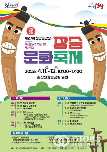 oto방송 김민석 기자 | 청양군의 대표적인 전통문화 축제인 ‘제27회 칠갑산 장승축제’가 오는 11일부터 12일까지 이틀간 칠갑산 장승공원 일원에서 화려한 막을 올린다.
