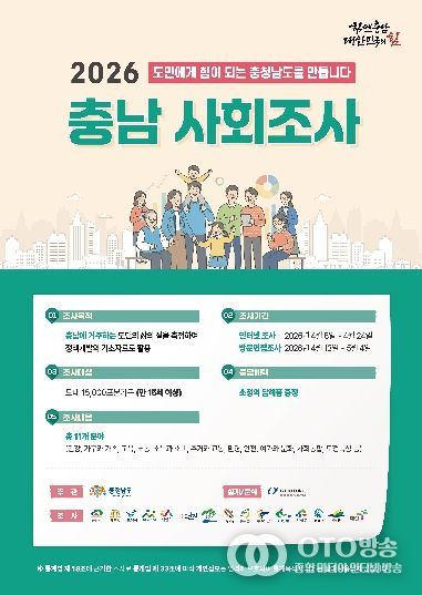 oto방송 김민석 기자 | 논산시는 오는 4월 13일부터 5월 4일까지 관내 1,020가구의 만 15세 이상 가구주 및 가구원을 대상으로 ‘2026 충남사회조사’를 실시한다.